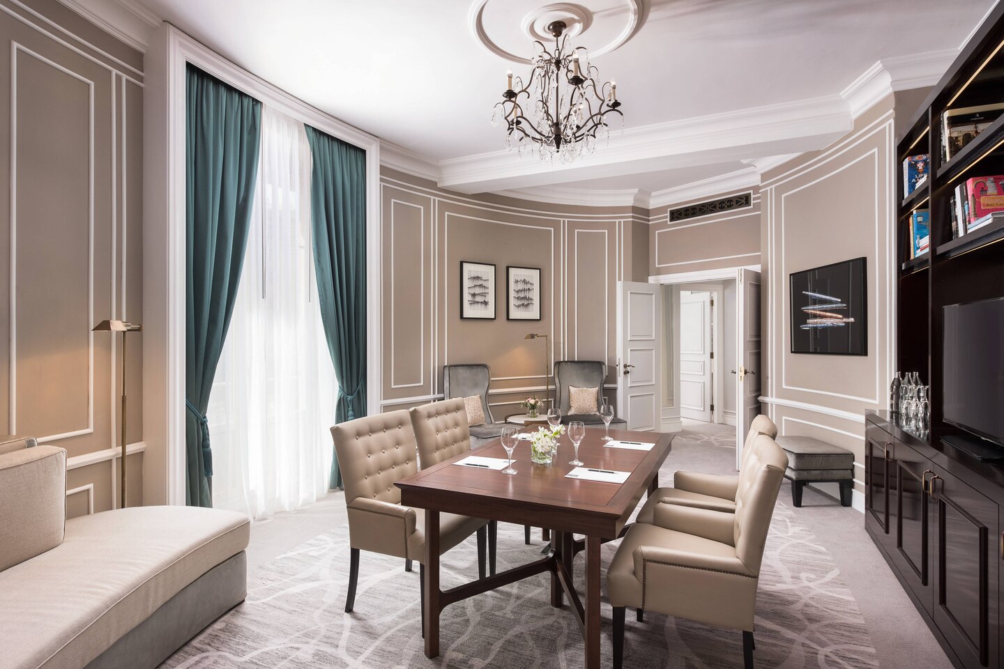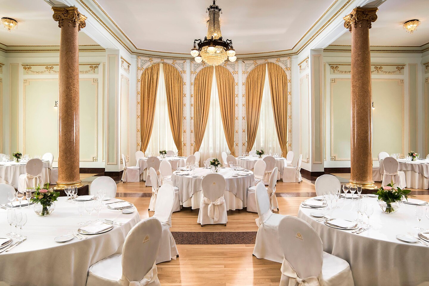 Для гостей — 5 залов для деловых и торжественных мероприятий площадью от 75 до 282 м2 и вместимостью до 590 человек, бизнес-центр, автомобильная парковка, аренда автомобилей, услуги флориста, услуги консьержа, услуги прачечной и химчистки.