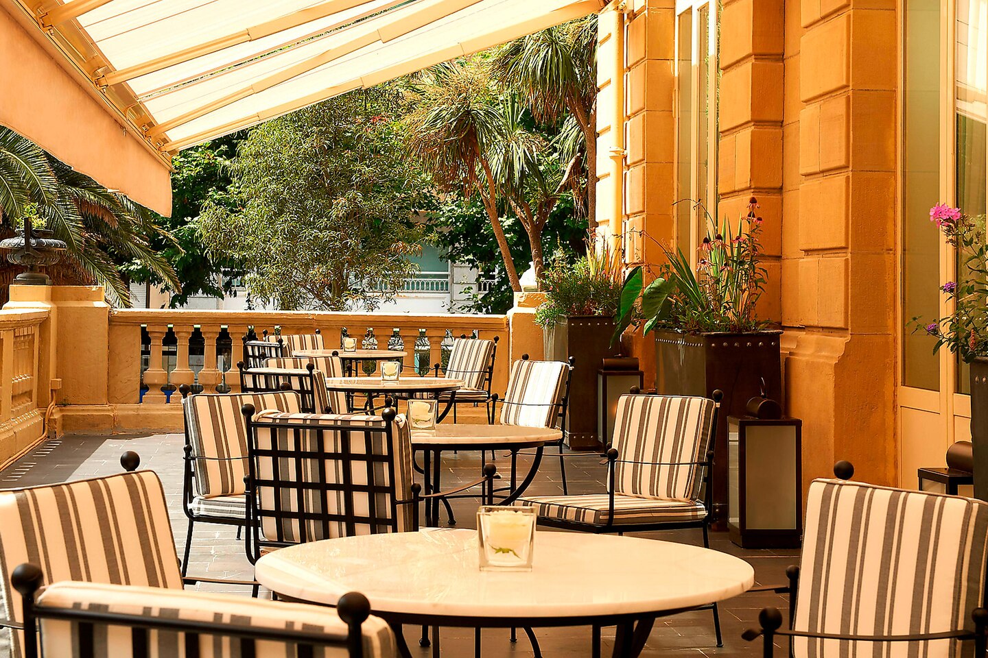 Cafe Saigón прекрасно вписывается в классические интерьеры элегантных салонов отеля. Вход в кафе расположен непосредственно в холле отеля. Это уникальное место с великолепными видами на исторический театр Виктории-Евгении. Здесь гости могут попробовать знаменитое азиатское меню специализирующееся на блюдах японской, индо-китайской и вьетнамской кухни.
