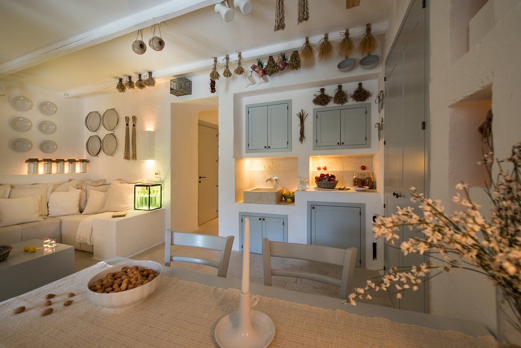 Casetta Splendida: 90 м2. Двухуровневый номер состоит из главной спальни с кроватью king-size и собственной ванной комнатой на верхнем уровне; гостиной, гардеробной, кухни и ванной комнаты с душевой - на нижнем. Также на нижнем уровне имеется небольшая комната, которую можно использовать как кабинет или спальню с двухъярусной кроватью для детей. В номере есть балкон, терраса на крыше и патио с шезлонгами, столиком и стульями. Максимальное размещение — 2 взрослых + 2 детей.
