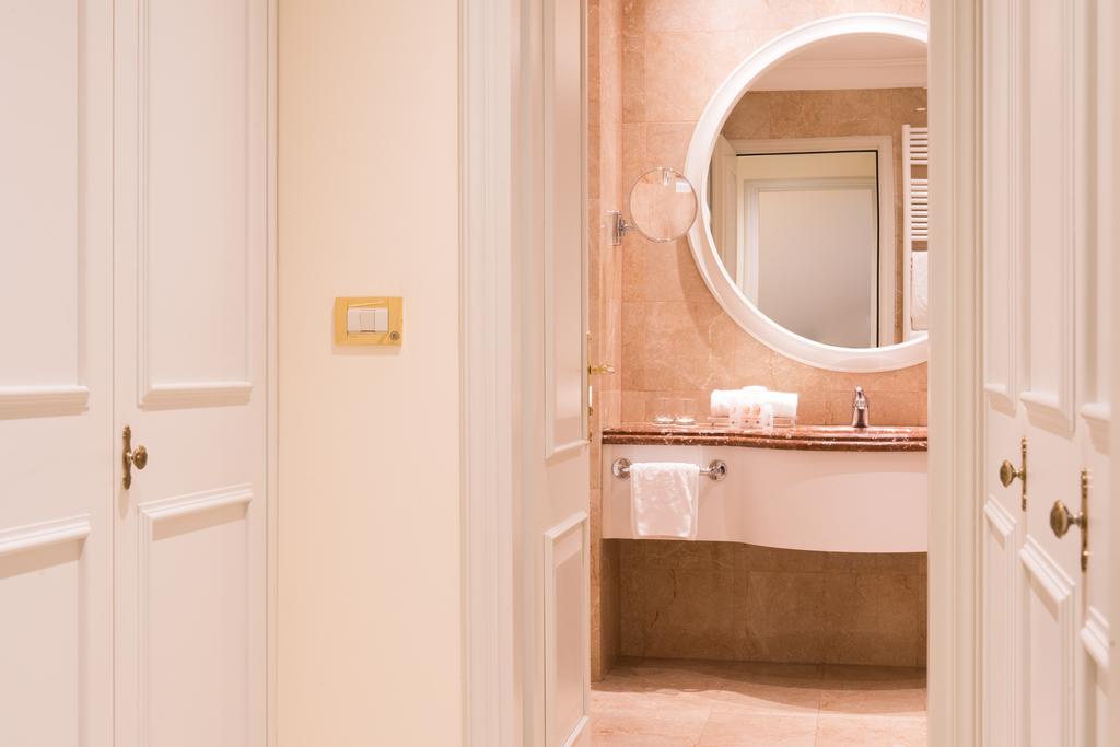 Classic Room: 27-45 м2. Просторный номер в классическом стиле в теплых тонах, обставленный в стиле Людовика XV, состоит из спальни с двуспальной кроватью или двумя кроватями twin и отделанной мрамором ванной комнаты с ванной и душем. Вид на город.