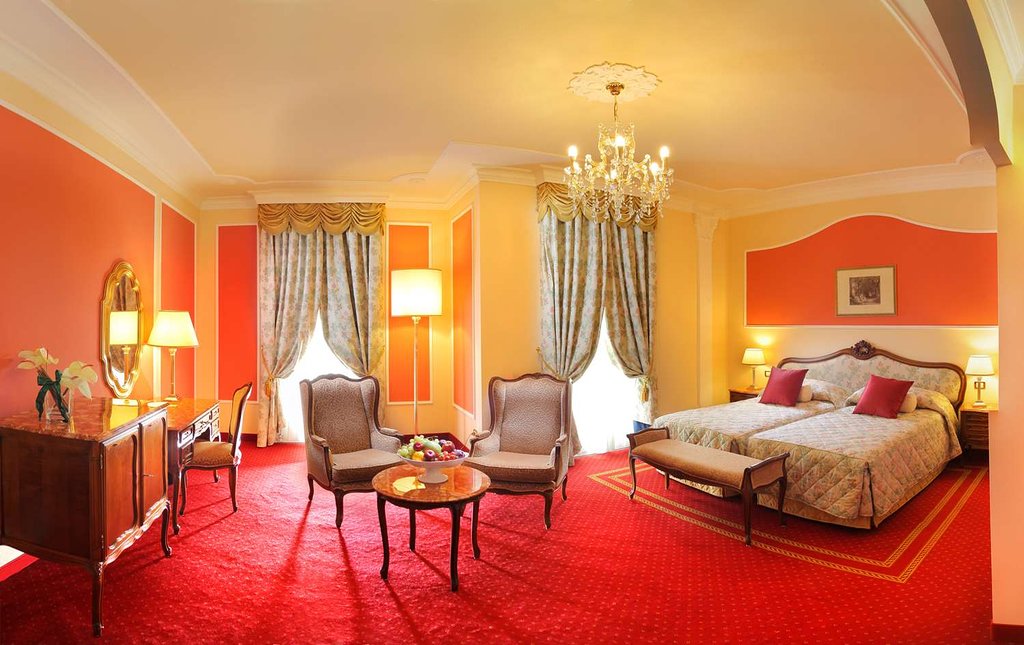 Imperioal Suite Belle Epoque: 50 м2+ терраса 25 м2. Отдых в одном из трех исторических сьютов отеля Grand Hotel Trieste & Victoria – непередаваемый опыт. Стиль интерьеров этих сьютов неповторим в своем изяществе и отражает важную веху в истории Италии начала ХХ столетия. Полностью реновированные сьюты, изысканная мебель и текстиль передают стиль исторической эпохи. Площадь 50 кв.м, раздельные гостиная и спальня, зона мини-бара, два телевизора : в гостиной и в спальне. Большая терраса с видом на тихую пешеходную зону курорта Абано Терме. Элегантная и светлая ванная комната с двумя раковинами, душевая кабина и большие окна. Возможность бронирования соединенных между собой сьютов. Эксклюзивный набор туалетных принадлежностей и VIP-приветствие с фруктами и просекко.