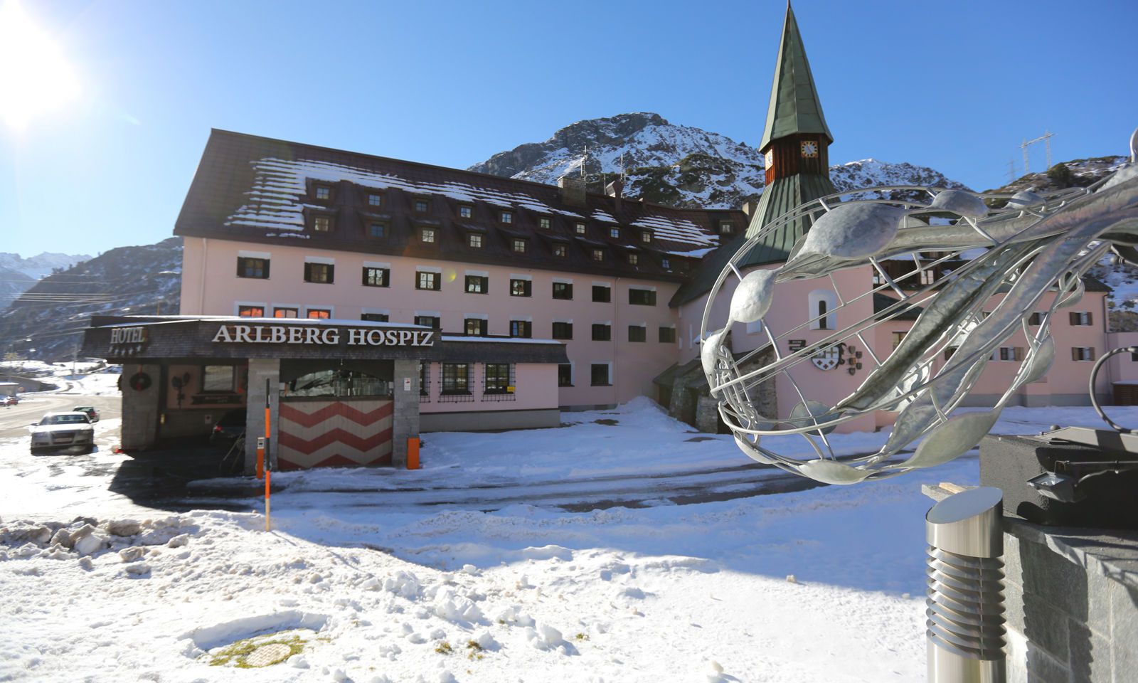 Отель Arlberg Hospiz, с его нежно персиковым фасадом и нарядной башней, построен в современном альпийском стиле. В стильных интерьерах использована отделка из натуральных материалов, таких как дерево, камень, мрамор, изящные ткани и ковры. Со вкусом оформленные современные номера оборудованы по последнему слову техники и предлагают роскошные виды на горные пейзажи.