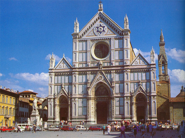 Эту церковь задумали и построили монахи-доминиканцы Систо да Фиренце и Ристоро да Камни. Строительство началось в 1246 году на месте доминиканской молельни Х века Санта Мария делле Вине. В 1279 году были закончены нефы, а во второй половине XIV века Якопо Таленти завершил постройку Колокольни и Сакристии. Прекрасный фасад церкви - результат переделки, предпринятой Леоном Баттиста Альберти в 1456-1470 гг. (Прежний фасад датировался началом XIV века). Талантливый архитектор создал великолепный портал и всю верхнюю часть церкви с ее четкой ритмикой квадратов, инкрустированных мрамором. Композиция квадратов ограничена с трех сторон геральдическими символами семьи Ручеллаи, по заказу которой была построена эта церковь. Ее интерьер разделен на три нефа пилонами в виде связки колонн, которые поддерживают огромные арки со стрельчатыми сводами. Интерьер подвергался обновлению в XVI веке. <br>