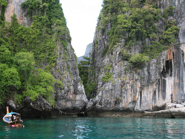 Южная часть архипелага – меньший по размеру остров Пи-Пи-Ле – необитаем. Остров представляет собой известняковый монолит, вертикально поднимающийся из воды. Пи-Пи-Ле – место притяжения виндсерферов и подводников, поскольку он изобилует живописными лагунами, бухтами, пещерами и скалами. Кстати, пещеры на острове полны ласточкиных гнезд – главного деликатеса азиатской кухни. Поэтому местные жители постоянно приплывают сюда на «охоту», с помощью бамбуковых шестов взбираясь на головокружительную высоту за ласточкиными гнездами.