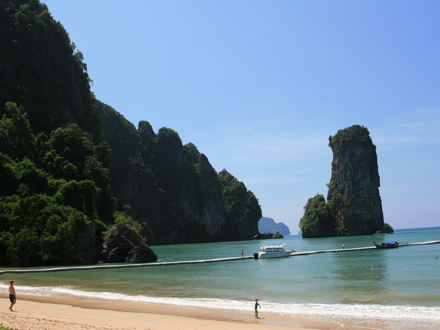 Пляжи Railay (Railey) и Hat Tham — два самых популярных пляжа, расположенные к югу от Ao Nang на холмистом полуострове Ao Phra Nang. Именно сюда едут туристы в поисках таинственных пещер (для любителей альпинизма на пляжах предлагаются занятия с инструкторами, а также специальное снаряжение).