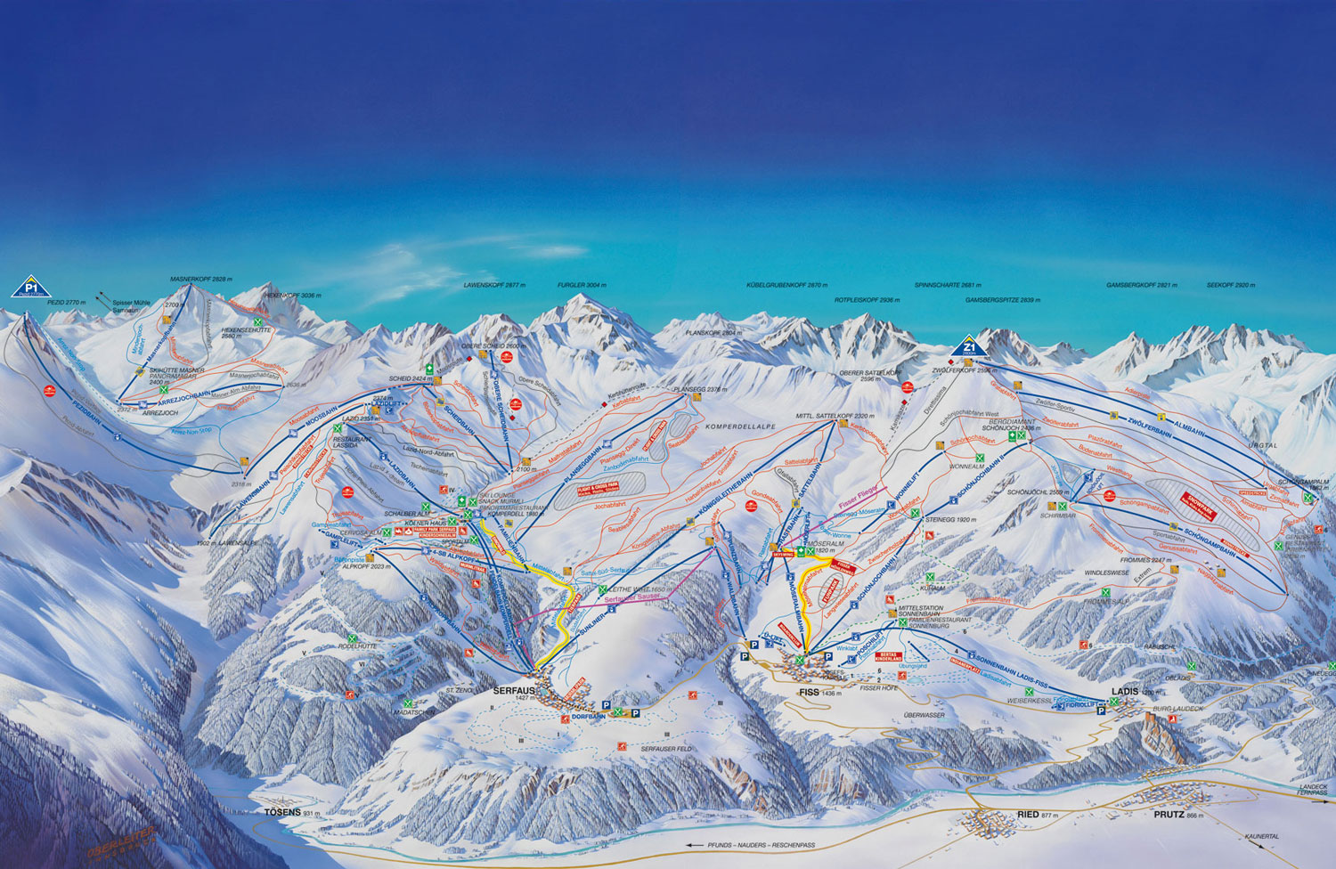 - достаточно новый горнолыжный курорт в западной части земли Тироль, неподалеку от верховьев реки Инн, в центре уютной долины Обириннталь. В регион помимо самого Серфауса входят соседние горнолыжные деревни Фисс и Ладис. Все три курорта соединены подъемниками и спусками. В достаточно короткие сроки Серфаус превратился в один из лучших горнолыжных регионов страны. Эти курорты составляют новый регион катания с замечательным климатом, красивыми лесистыми склонами, объединенный единым ски - пасом. Серфаус сочетает в себе высокий уровень сервиса и шарм альпийского курорта. Широкие, идеально подготовленные и маркированные трассы привлекают лыжников и сноубордистов разного уровня подготовки. На курорте спуски не нумеруют, а именуют.