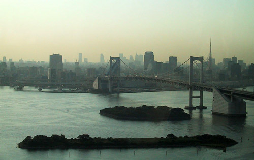 RAINBOW BRIDGE. Этот мост - визитная карточка Токио. Он соединяет Токио и Одайбу. Помимо автомобильной дороги, хайвэя и монорельсовой дороги на мосту есть бесплатная пешеходная дорожка длиной