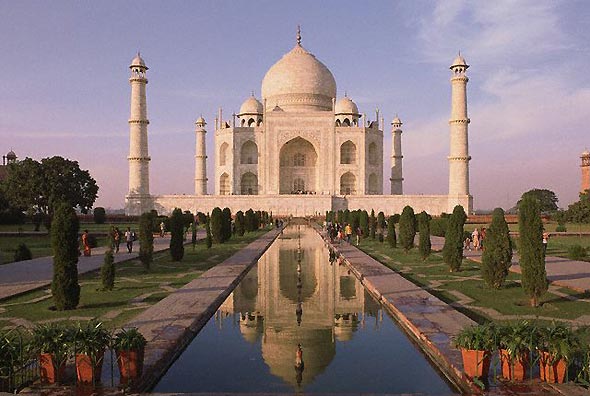 Тадж Махал. Мавзолей, давно ставший символом Индии, построен правителем Шахджаханом в память о его любимой жене Мумтаз-Махал. В строительстве, продолжавшемся 22 года, участвовали 20 тысяч мастеров. Внутри посетители могут осмотреть гробницы Шахджахана и Мумтаз-Махал.