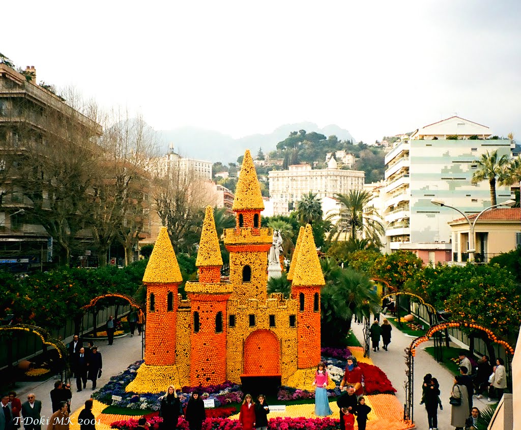 Праздник лимонов длится 15 дней, во время которых, кроме обычных атрибутов всех праздников (музыки, танцев, ярмарок) город заполняется невероятным количеством цитрусовых. В саду Jardin Biove из плодов строятся фигуры, выкладываются орнаменты. А по набережной Promenade du Solei проезжают парадом платформы с гигантскими апельсино-лимоно-мандароновыми сооружениями. Заканчивается фестиваль ошеломляющим фейерверком над бухтой Бастиона (la Baie du Bastion). А еще скульптуры из цитрусовых разбираются на «детали» довольными туристами.