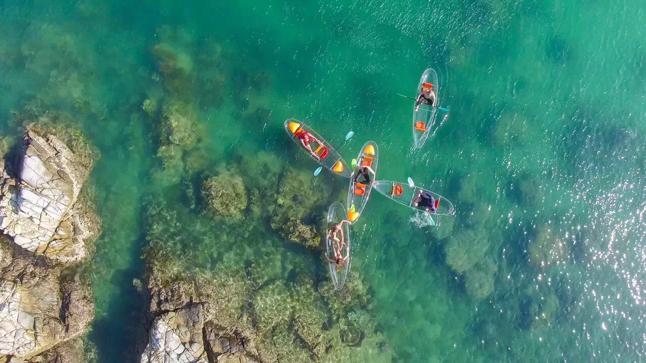 Гребля в лодке с прозрачным дном - способ оценить морской мир, оставаясь на воде.
